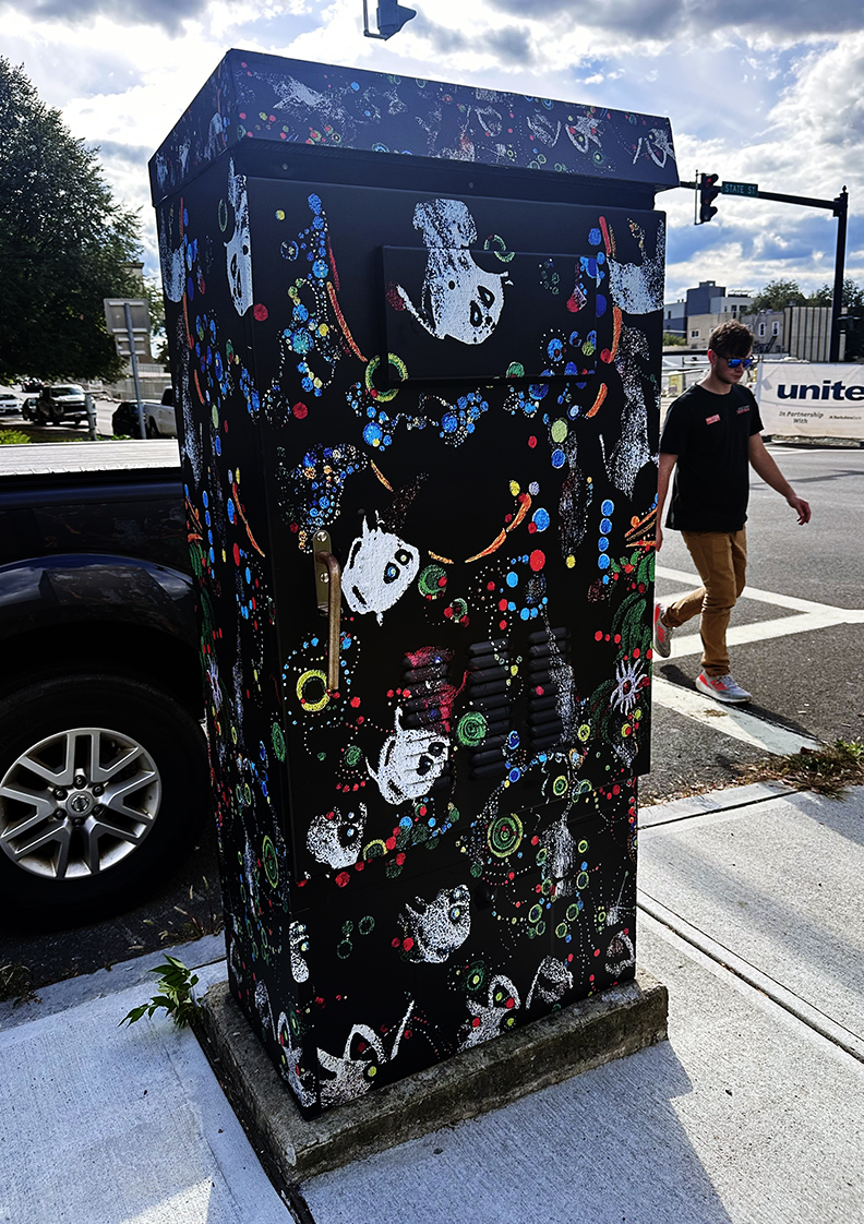 Acrylic and metal photographs on metal, 3.5' x 1.5' (four paintings)